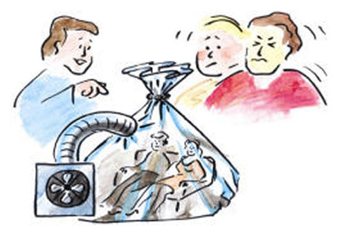 Lüftungsanlagen saugen die feuchte Luft ab und führen frische, trockene Luft dem Wohnraum zu - vergleichbar mit dem Wohnen unter einem Sauerstoffzelt. Diese Form der künstlichen Beatmung zieht jedoch, entgegen den vielfach angepriesenen Vorteilen, auch erhebliche Nachteile mit sich: Neben der ständigen Luftbewegung und den damit verbundenen Strömungsgeräuschen können sich in den Lüftungsrohren sowie in den Filtern bei nicht regelmäßiger Wartung Bakterien oder Legionellen ansammeln und die Gesundheit der Hausbewohner eher gefährden als fördern.